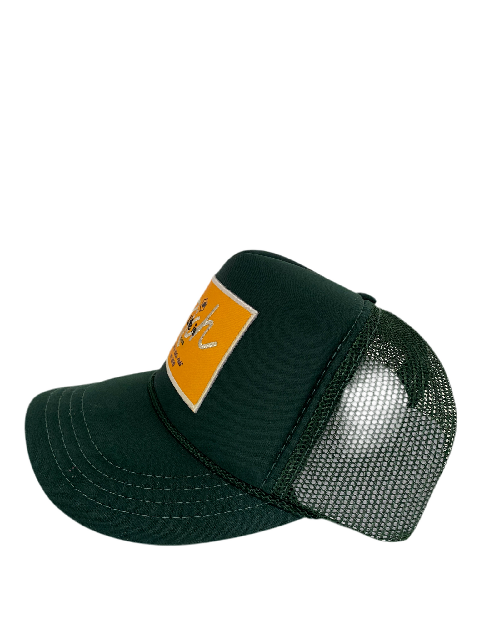 Hunter Green with Gold Rich Box Logo - 5 Panel High Crown Kids Trucker Hat